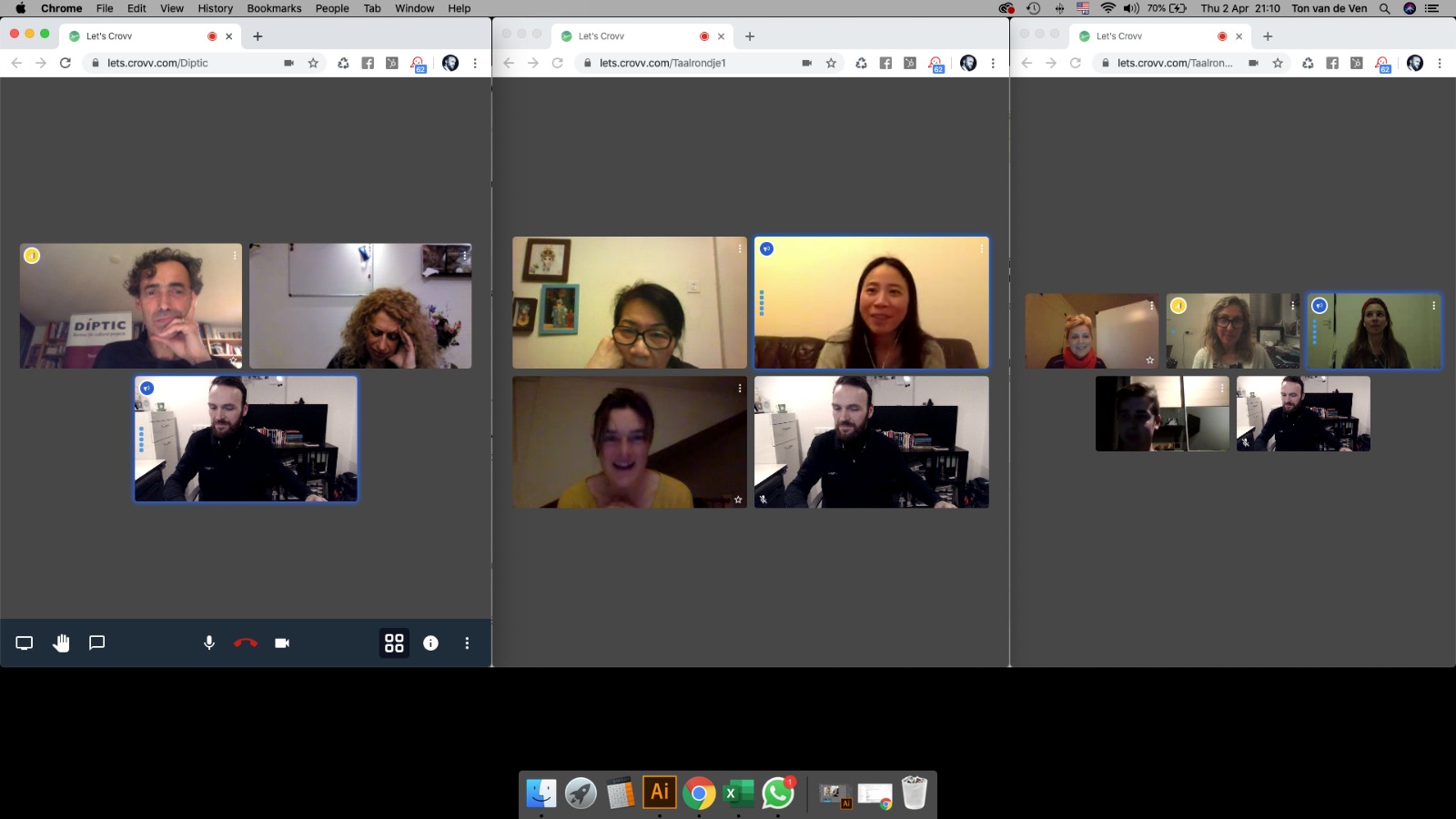This online environment works like a video conference: we talk to each other via the microphone and we exchange written messages via chat.